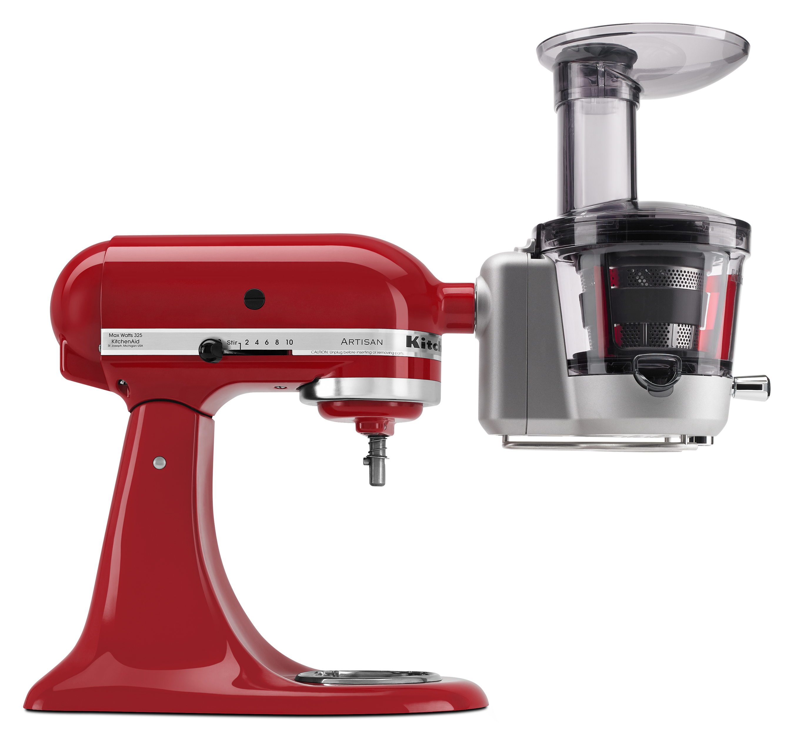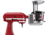 The new juicer and sauce attachment features a 2-in-1 feed tube capable of accommodating a variety of fruits and vegetables. A stainless steel blade first pre-slices foods, and then processes them at a low speed. The attachment includes a low pulp, high pulp and sauce screen. Suggested retail price for the juicer and sauce attachment is $249.99.