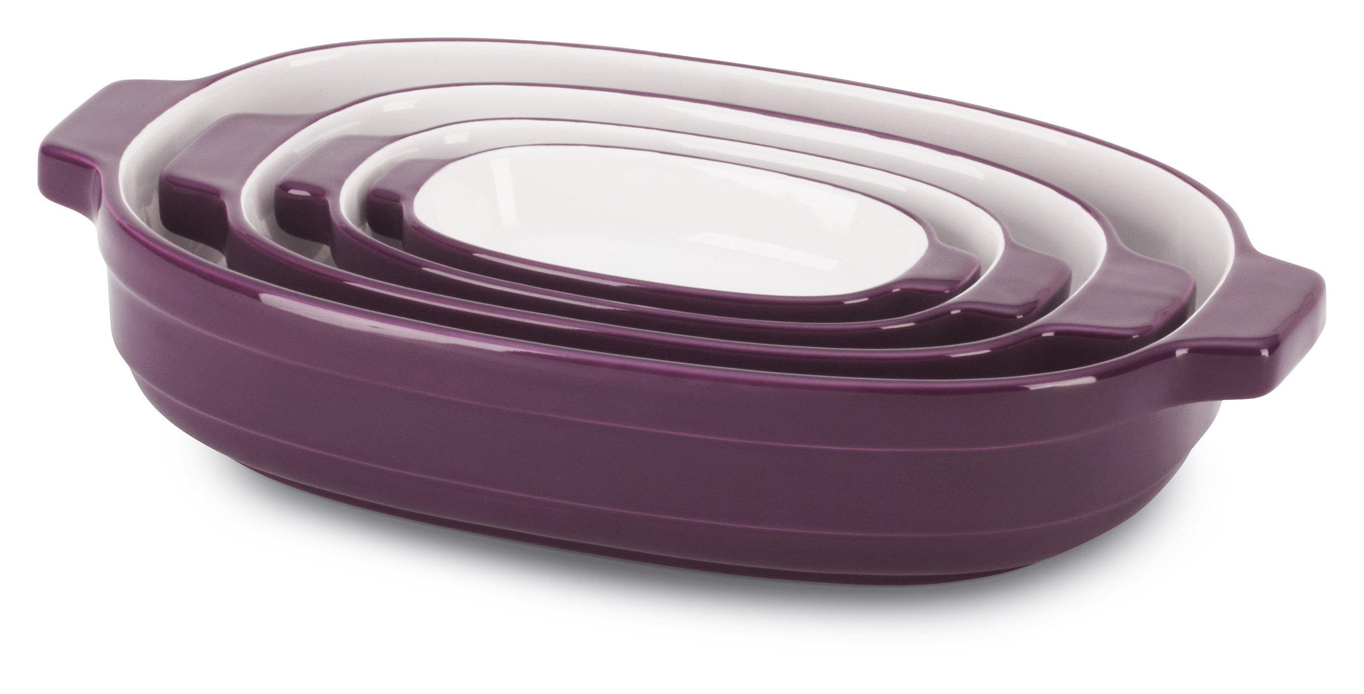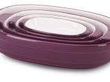 The Streamline ceramics bakeware collection now includes casseroles in 1.9qt, 2.8qt. and 4.2qt. sizes, with a white base matched to either an Almond Cream, Azure, Buttercup, Empire Red, Key Lime, Onyx Black or Persimmon top, at suggested retail prices ranging from $49.99 to $99.99. Nesting sets of casseroles, available for $149.99, in the same colors plus Boysenberry, consist of .3qt, .7qt., 1.5qt. and 3.5qt. pieces that can be stored inside one another.