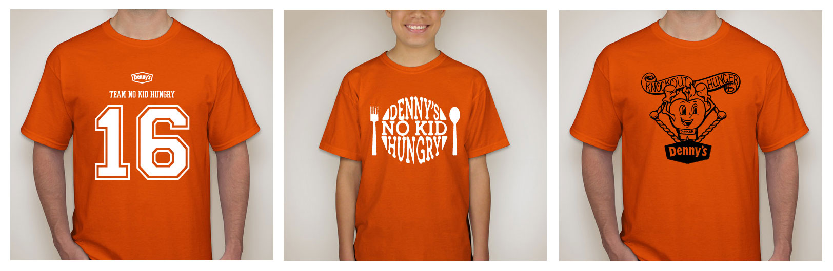 In addition, guests are invited to contribute to the cause via two alternative means this year, including making a monetary donation of their choice at dennys.com/nokidhungry; all who donate online will be e-mailed a coupon for $5 off their next $20 meal at Denny’s. Customers can also pledge their support by purchasing one of three exclusive No Kid Hungry campaign t-shirts – designed by Denny’s team members in Texas, Nevada and Kentucky – for $10 each. T-shirts are produced by Booster, available at dennys.com/nokidhungry and a portion of all sales goes directly to No Kid Hungry.