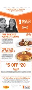Since 2011, Denny’s has donated more than $1.4 million to the No Kid Hungry campaign. In order to increase its impact this year, Denny’s is beginning its fundraising efforts, which includes online t-shirt and in-unit coupon sales, a full two weeks ahead of most partners.