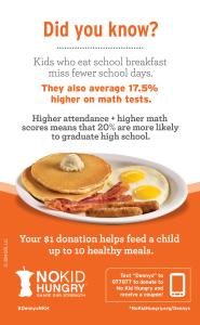 For more information on this year’s efforts, please visit dennys.com/nokidhungry or nokidhungry.org/dennys.