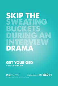 Created pro bono by McCann XBC, a unit of McCann Erickson, the new English and Spanish–language television, radio, print/OOH and online PSAs encourage viewers to take the first steps toward obtaining their GED® diploma. The “Skip the Drama” campaign highlights how not having a GED® diploma can cause unnecessary drama, and situations like filling out a job application that seem normal and mundane can become nerve–wracking and intense when questions of education arise. The PSAs, featuring Kristian Alfonso from Days of Our Lives and John York from General Hospital, draw a humorous parallel between the drama of not having GED® credentials and the drama on television soap operas.