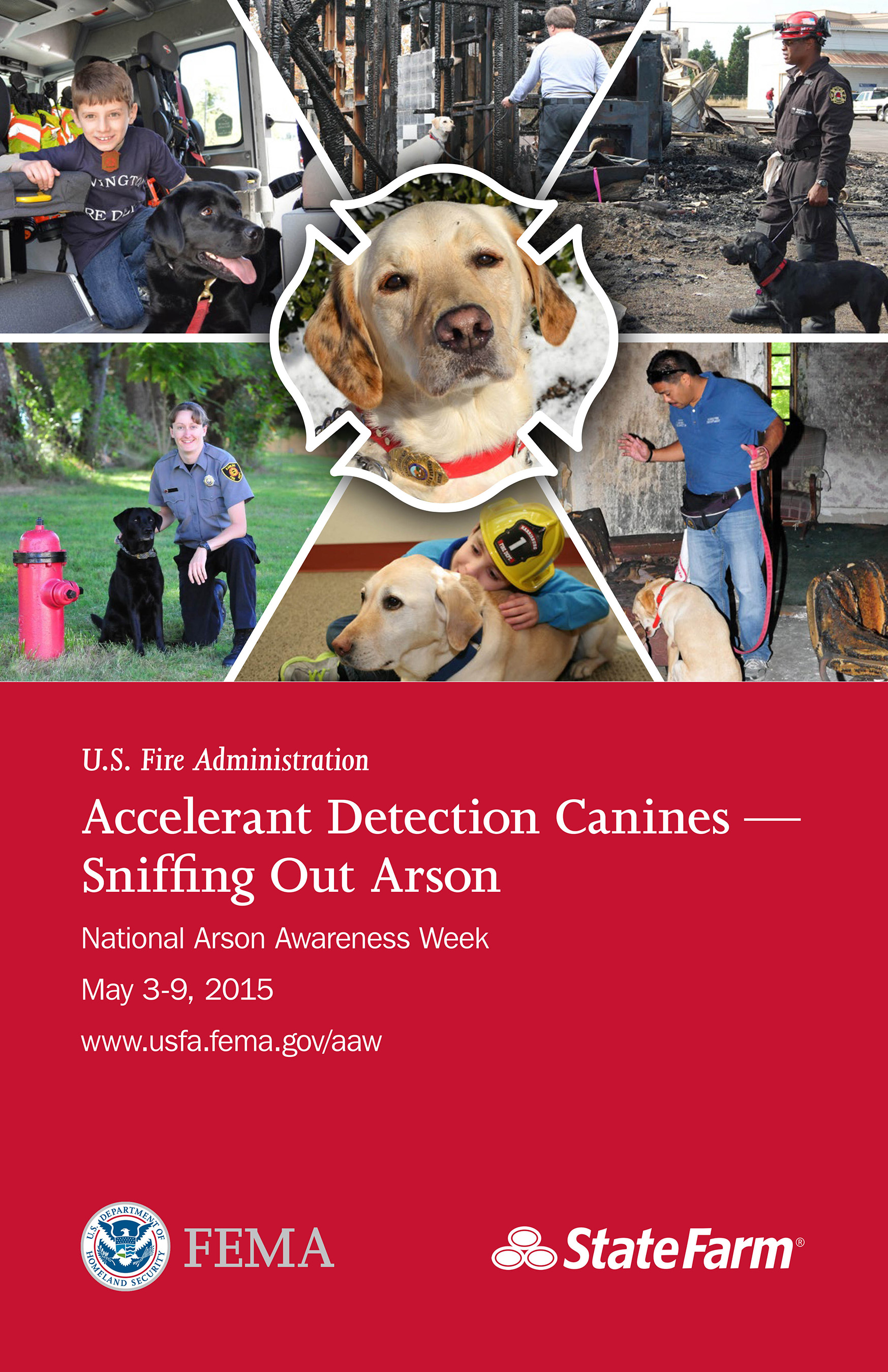 To learn more about the benefits of having an accelerant detection canine team in your community, view profiles of local teams, and download an Arson Awareness Week poster visit the U.S. Fire Administration website at www.usfa.fema.gov/aaw. Information about the State Farm Arson Dog Program and locations of certified teams can be found at www.arsondog.org.