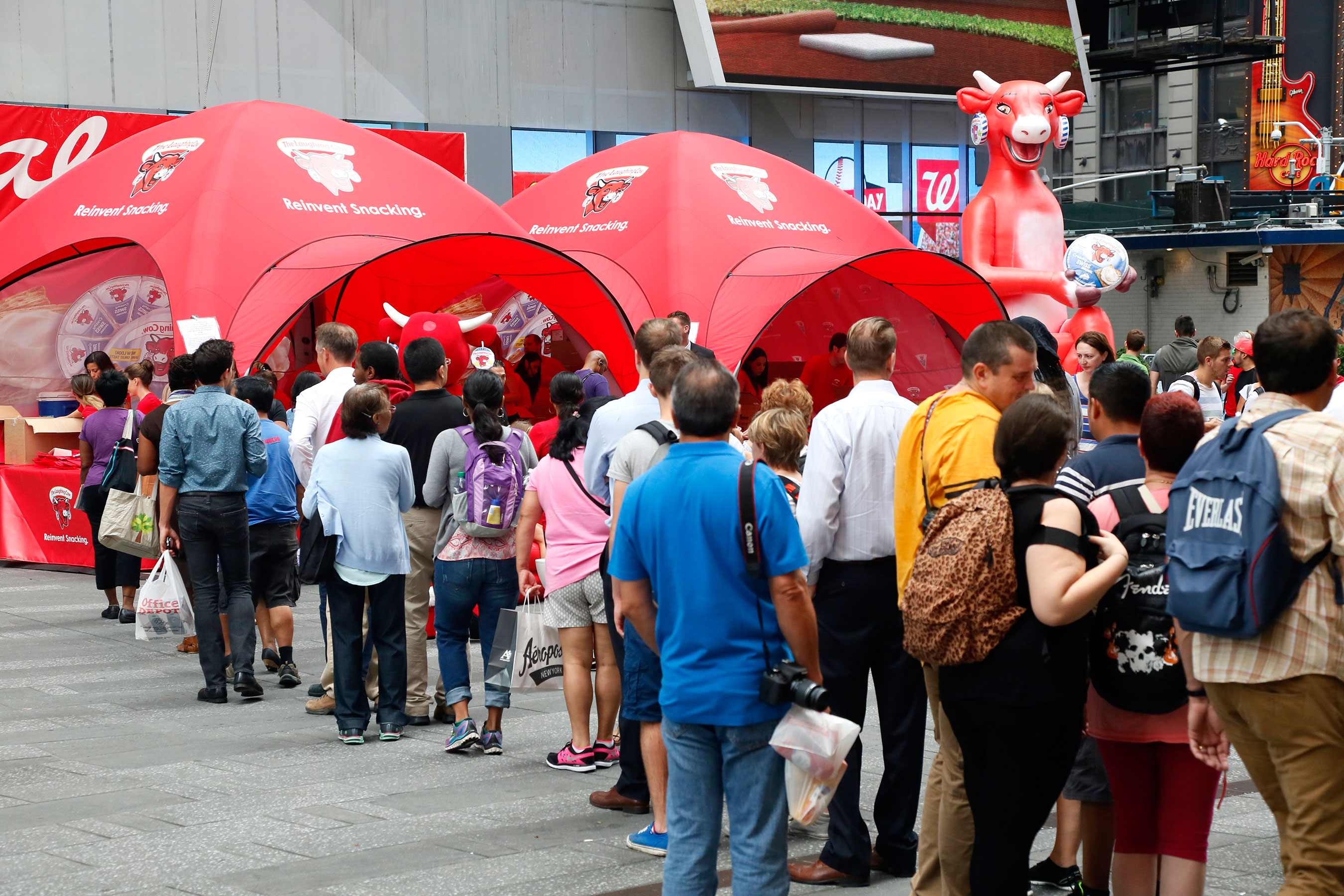 With digital billboards featuring simple white imagery of the creamy cheese to break through the chaos of Times Square, and impactful brand visuals throughout the event space, including a 26-foot-tall version of the Cow herself, the event served as the official kick-off to the brand’s new advertising and marketing campaign, which encourages consumers to “Reinvent Snacking” by bringing back mindful satisfaction to their snacking experiences. The campaign is complete with a new TV ad, new packaging for The Laughing Cow® Spreadable Cheese Wedges, a freshly designed website and a new flavor variety: Creamy Spicy Pepper Jack. With this campaign, Bel Brands USA (Bel), the makers of The Laughing Cow® Spreadable Cheese Wedges, is now targeting the brand’s communication to an expanded audience of men and women who desire a great taste experience first and foremost, while seeking balance and moderation in their snack choices.
