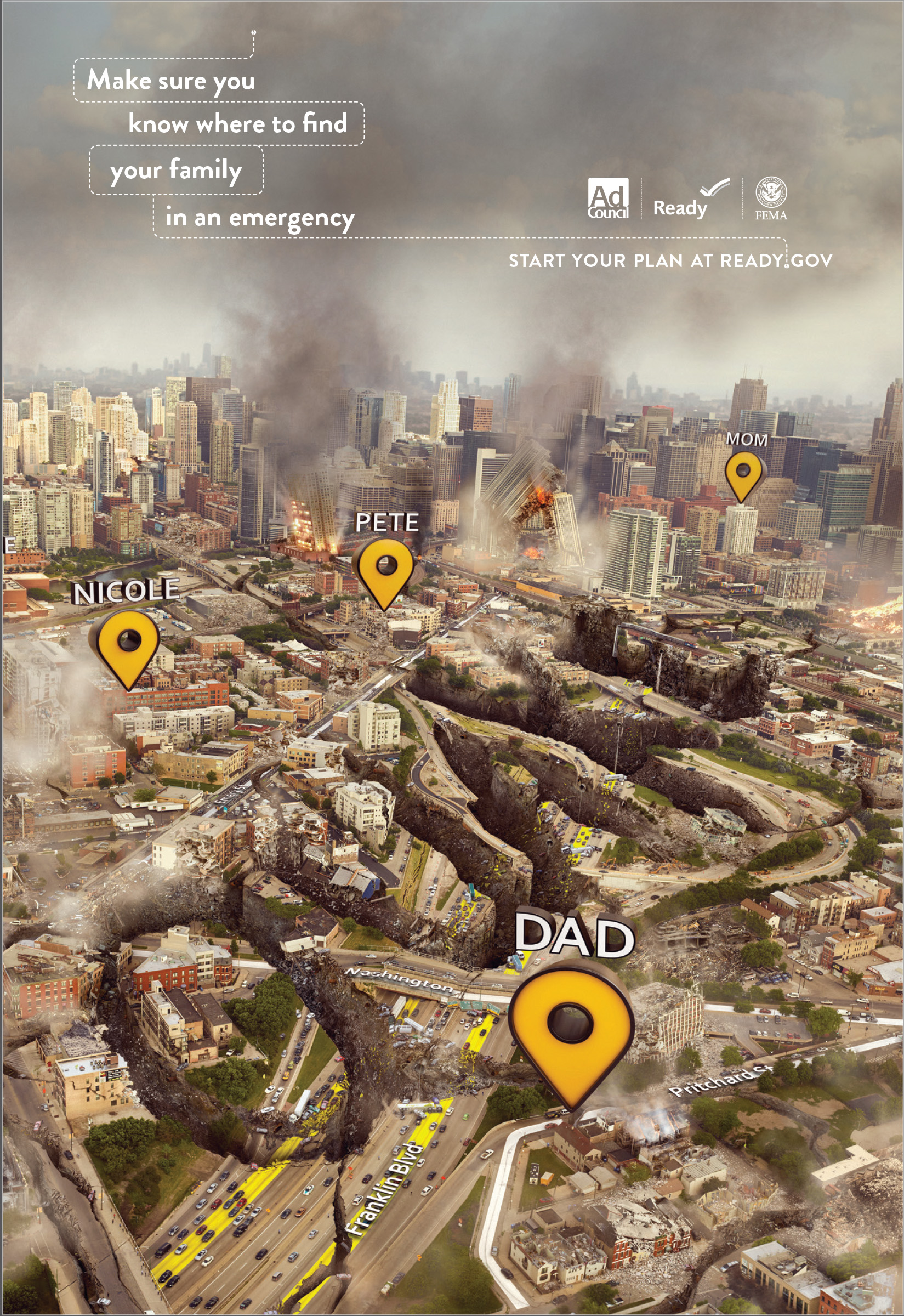 “The first step to preparing for disasters is simple and it’s free – talk to your family and make a plan,” said FEMA Administrator Craig Fugate. “Do you know how you’ll reunite and communicate with your family during an emergency? Through our continued partnership with the Ad Council, this year’s campaign illustrates how making a plan can keep families together and safe during a disaster.”