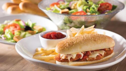 With the Signature Breadstick Sandwiches hitting the lunch menu today, guests can select one of two options, served with garlic Parmesan fries, unlimited breadsticks and choice of homemade soup or Famous House Salad: