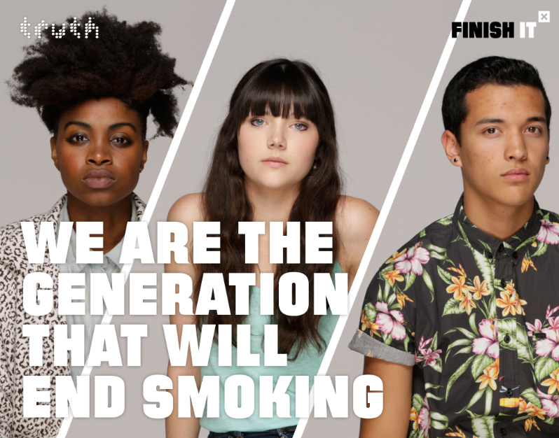 The Finish It campaign provides teens with the tools to make this a fight they can own and – ultimately — can win. In 2000, when truth launched, the teen smoking rate was at 23 percent. The 2013 Monitoring the Future study finds that the rate of teen smoking has significantly declined to below ten percent. This means that an overwhelming majority of teens — 91 percent — don’t use tobacco products. The Finish It campaign seeks to build on this momentum and rally this generation to “finish it”.