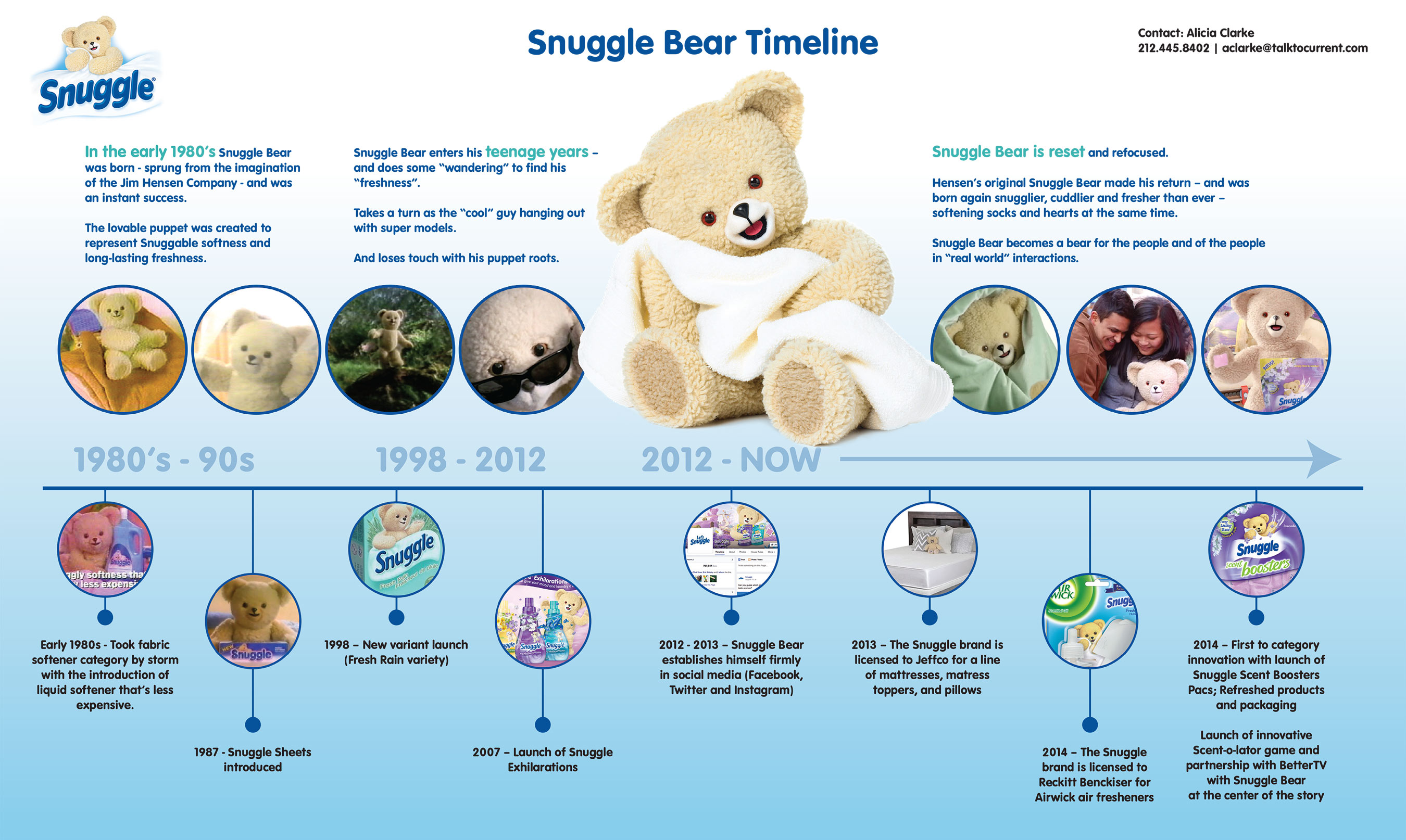 Since being created in the early 1980’s, from the imagination of the Jim Henson’s Creature Shop, Snuggle Bear has become a beloved part of the pop culture landscape. He’s now been featured in everything from 1980’s cultural compilations to hit television shows to modern-day user-generated social media memes. Snuggle Bear has a growing social media presence with a remarkably high level of engagement among his fans and followers on his official Facebook, Twitter and Instagram channels.
