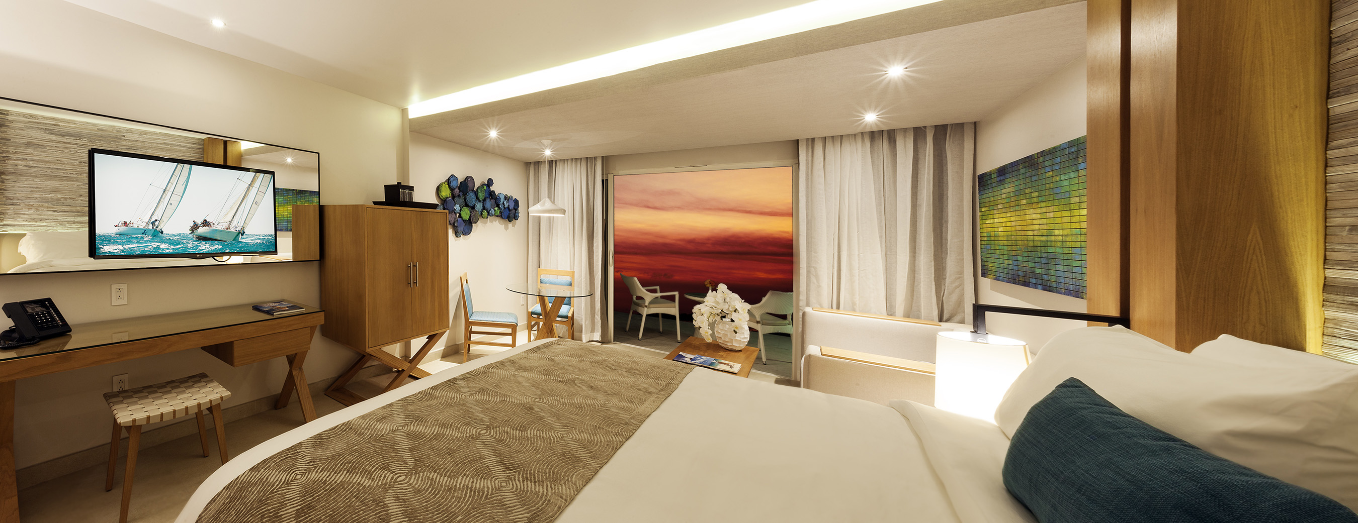 Blending contemporary design with a Caribbean vibe, the resort evokes a chic, inviting atmosphere from the public spaces to each of the spacious accommodations ranging from the 480 square-foot Junior Suite King to the lavish 2,600 square-foot Luxury Penthouse. Utilizing custom-designed furnishings, carefully laid out artwork and a modern lighting concept, the overall effect effortlessly maintains both a modern edge and the Caribbean’s laid back allure.