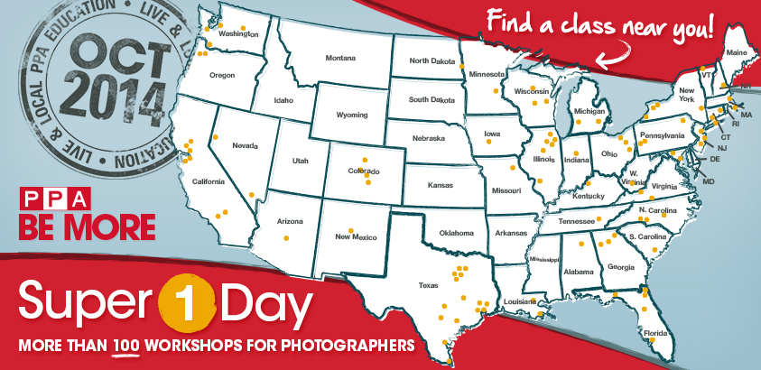 The early bird registration deadline is September 30, with a cost of $99 for each workshop. See the full schedule, locations, and registration details at www.ppa.com/Super1Day. Super 1 Day is open to all photographers, regardless of experience level or PPA membership. There are three easy ways to register: