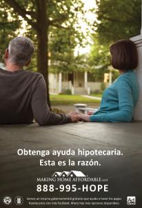 Los anuncios de servicio público, que existen en inglés y español, indican a los propietarios de viviendas que deben llamar al número 888-995-HOPE (4673) para hablar directamente con un experto de una agencia de asesoría en materia de vivienda aprobado por el Departamento de Vivienda y Desarrollo Urbano sobre soluciones basadas en las circunstancias individuales de cada familia. La línea de ayuda gratuita atiende las 24 horas, los siete días de la semana. Además, la campaña dirige a los propietarios de viviendas al sitio MakingHomeAffordable.gov para que obtengan información y determinen si califican.