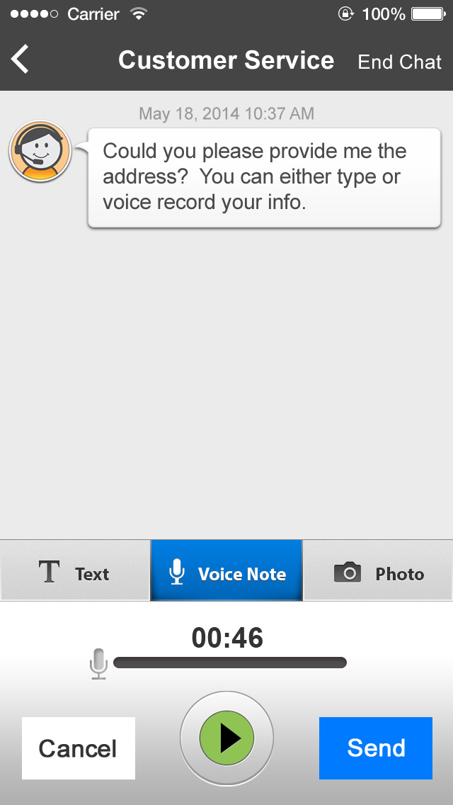 - Direct App2Agent™ Communication with customer service representatives via text chat, voice memos, and images without leaving the app. There’s no need to re-authenticate or repeat information once the customer reaches an agent.