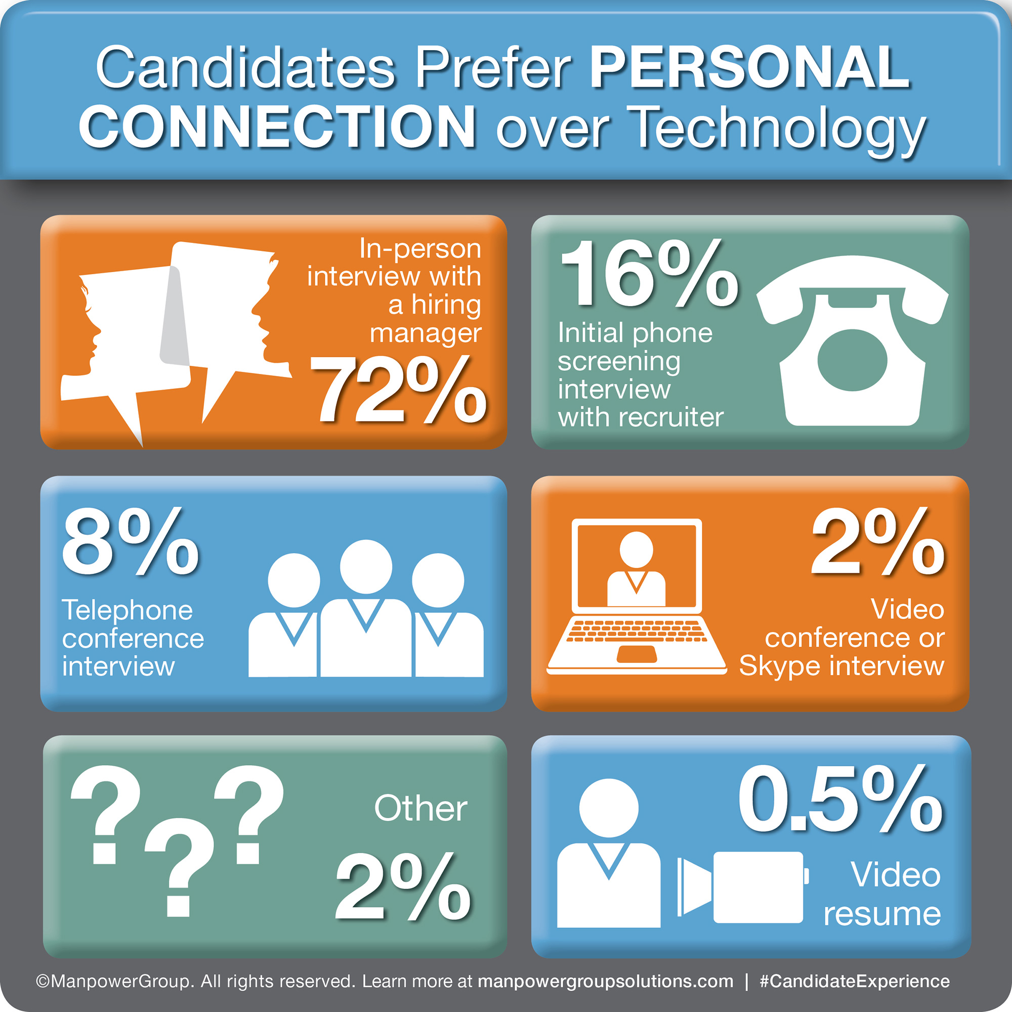 “Even as technology – and the awareness of new tools – continues to rapidly advance, the tried, but true methods of in-person and phone interviews, and more frequent, personalized interactions with hiring managers or recruiters remain the clear preference of job seekers across generations. Organizations should evaluate their talent acquisition strategy and customize job seekers' experiences based on their preferences.