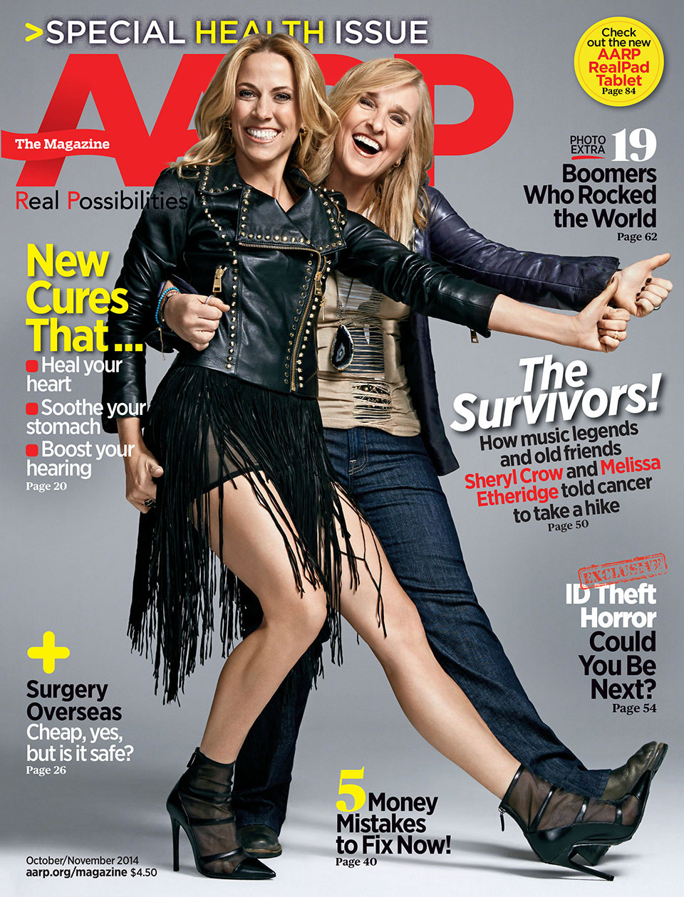 IN AN EXCLUSIVE INTERVIEW, MUSIC LEGENDS SHERYL CROW AND MELISSA ETHERIDGE TALK ABOUT BEATING CANCER, LIVING IN THE SPOTLIGHT AND MAKING SEX FUN AFTER 50 IN THE OCTOBER/NOVEMBER ISSUE OF AARP THE MAGAZINE