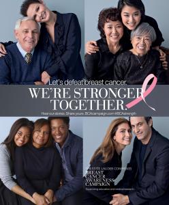 The following highly sought-after and iconic brands of The Estée Lauder Companies are contributing to The 2014 BCA Campaign by selling Pink Ribbon products or making donations: Aveda, Bobbi Brown, Bumble and bumble, Clinique, Coach, Darphin, Donna Karan Cosmetics, Estée Lauder, Jo Malone London, Lab Series Skincare for Men, La Mer, Origins, Prescriptives, Smashbox and Tom Ford Beauty. In true “We’re Stronger Together” spirit, these brands are united in their support of The BCA Campaign’s mission to defeat breast cancer through education and medical research.