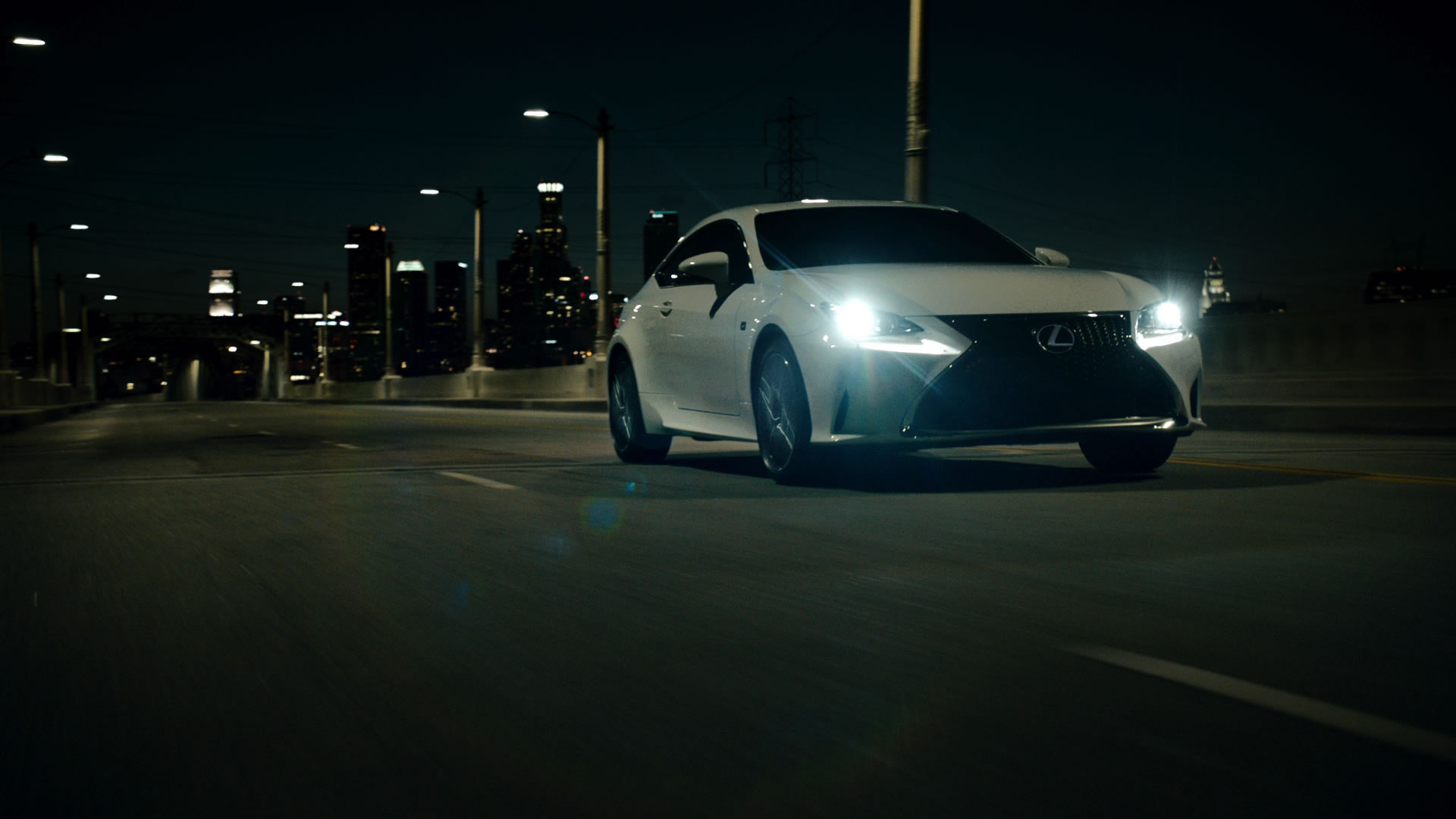 “Face Off” introduces the RC 350 sport coupe and tells the story of a man, played by actor Wes Bentley, who happens upon a coupe unlike any he has seen before. Walking with purpose, he enters a dark warehouse and encounters the RC; he instantly has a visceral connection with the coupe. The man clicks his key fob, unleashing the power of the vehicle, and illuminated light bulbs burst throughout the space. The two are united through the same spirit of adventure, and he gets in the car and peels out of the warehouse.