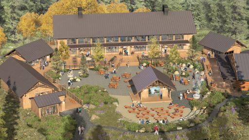 The new location also will feature cozy fire pits to gather around on cool Alaska evenings; outdoor seating for guests who wish to enjoy the scenery; three retail shops offering local goods; and an artist-in-residence cabin where Alaska native and local artists will display and discuss their works.