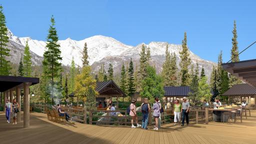 Base Camp will serve as a new gathering area to relax, shop, dine and enjoy music and entertainment. The largest building in the complex will be the grand 7,800-square-foot restaurant reaching two stories high to showcase views of the neighboring mountains for dining guests. Those wanting to quench their thirst or listen to live music can visit the Gold Nugget Saloon, home to the “Music of Denali Dinner Theater” that becomes a bar and music venue after the show.