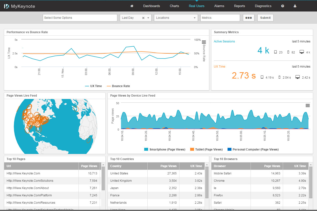 Delivering a digital experience with the performance customers expect requires enterprises to break down the traditional barriers between IT and the business. Using Keynote’s Performance Management Suite that now includes Real User Monitoring, enterprises can: