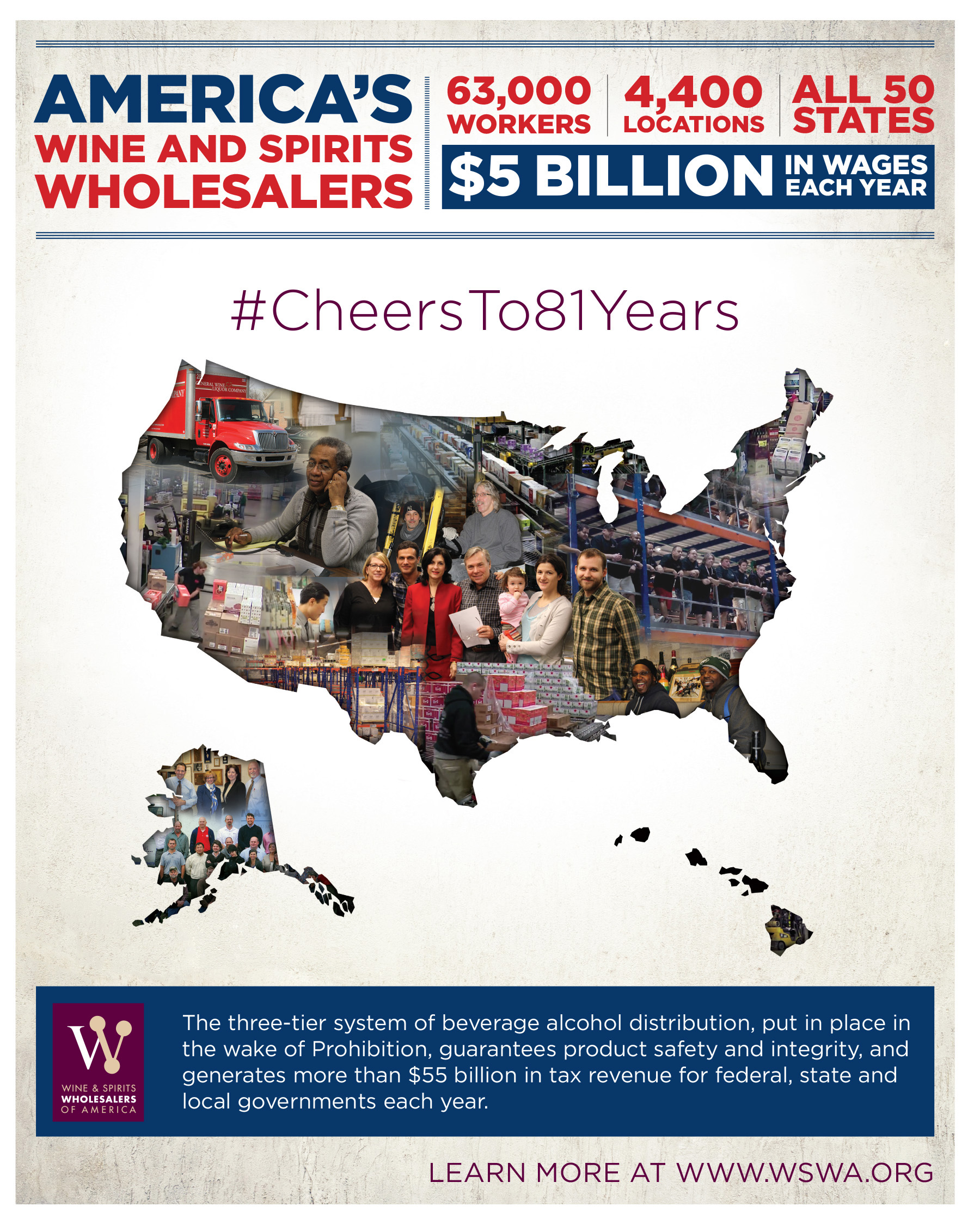 The Wine & Spirits Wholesalers of America (WSWA) is marking the occasion by saying #CheersTo81Years, and spotlighting to elected officials, the public and the media the benefits and significant economic impact of the wholesale tier and the industry as a whole.