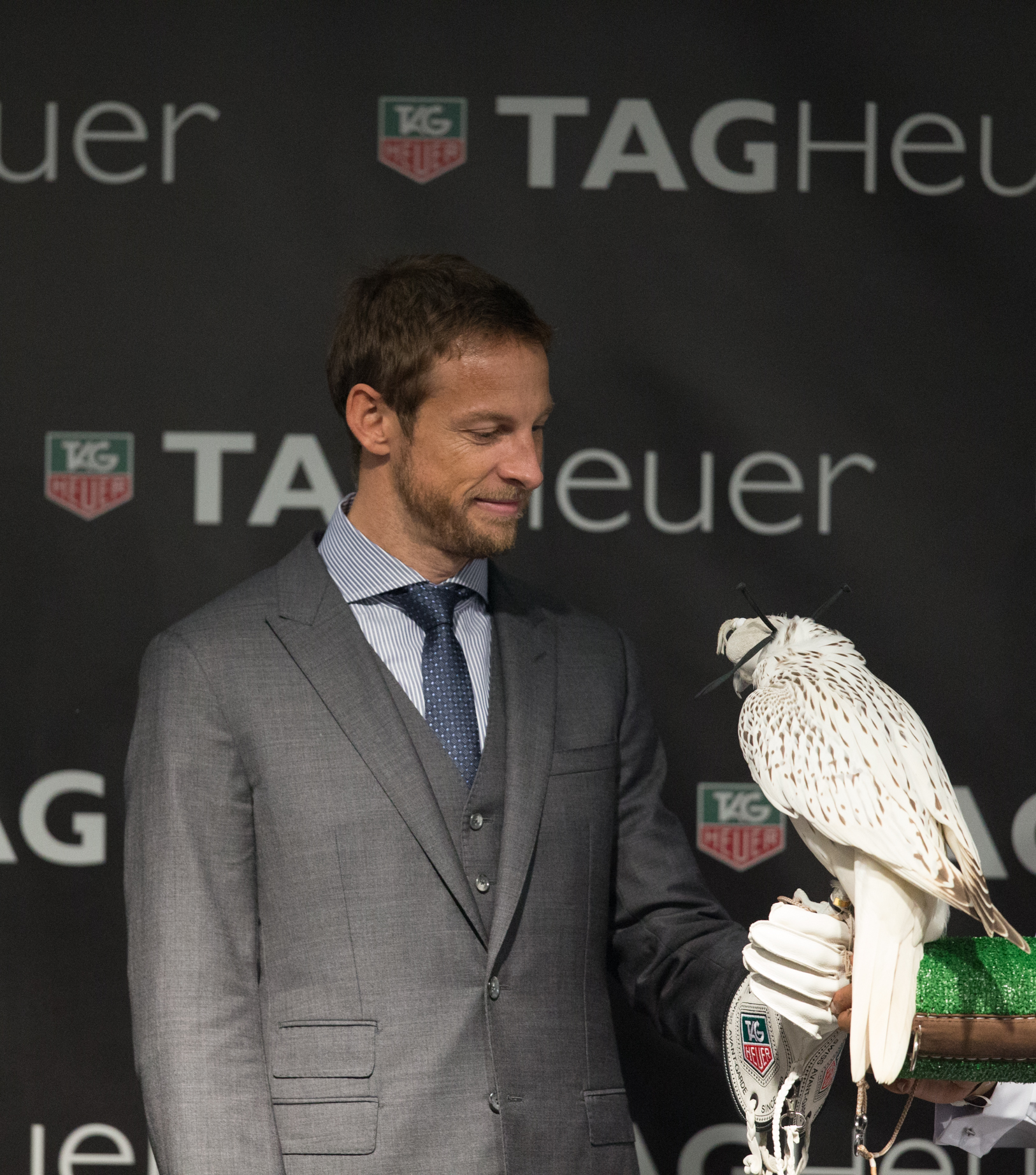 Abu Dhabi - United Arab Emirates, 22 November, 2014, PR Newswire- TAG Heuer, the Swiss avant-garde watchmaker, known worldwide for its high precision watches and chronographs, celebrated the last race of the Grand Prix season in Abu Dhabi in style when Mclaren Mercedes Formula One superstar and TAG Heuer brand ambassador Jenson Button showcased an exhilarating show with two Gyrfalcons from Abu Dhabi Falconers’ Club. The celebration also witnessed the star driver launch the brand’s latest innovative timepieces.