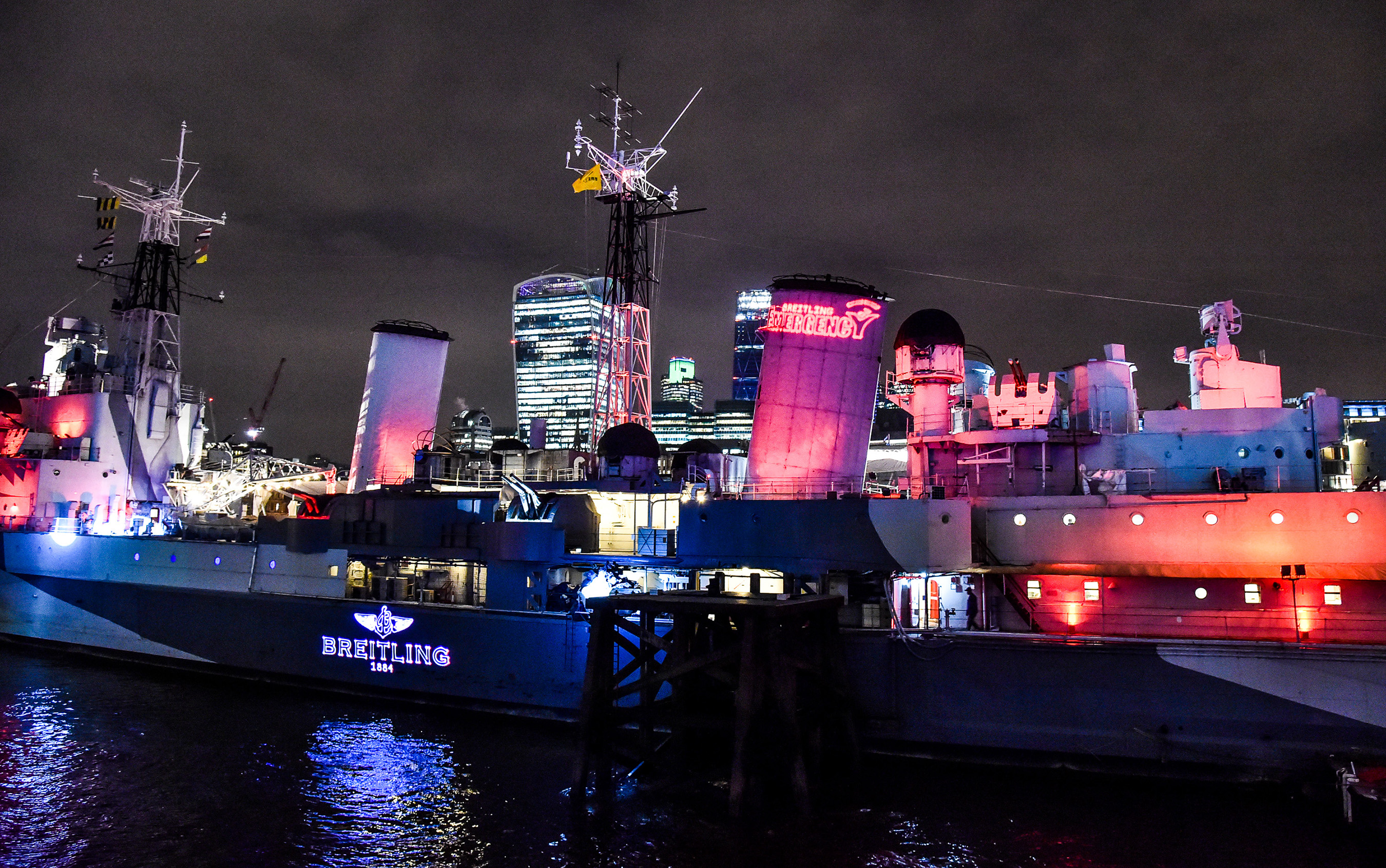 LONDON, 26th November, 2014/- To celebrate the launch of the Breitling Emergency II, the Swiss watch brand hosted a party on board the iconic warship HMS Belfast in London.