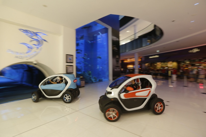Dubai-UAE: 27 November, 2014, PRNewswire/- Just days before the Abu Dhabi Grand Prix, Formula One drivers Romain Grosjean and Pastor Maldonado, who drive for the Renault-powered Lotus F1 Team, electrified the world’s largest shopping and entertainment destination through 100% electric vehicle, Renault Twizy.