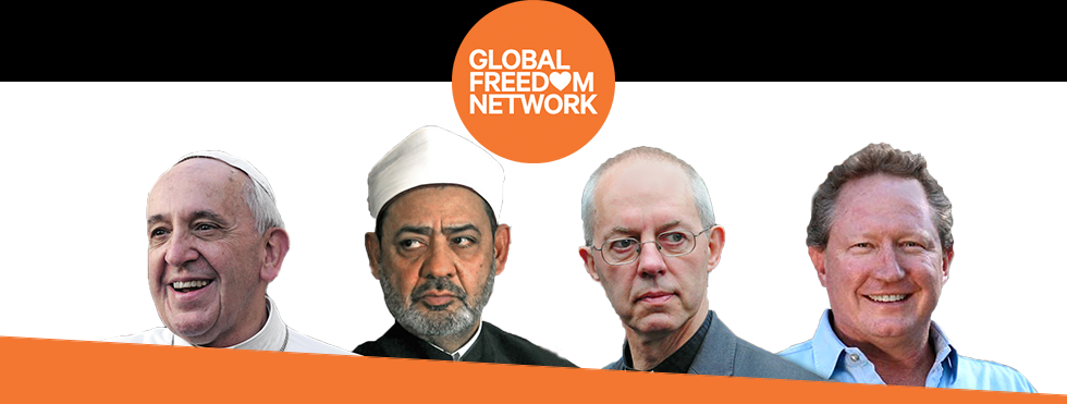 The Global Freedom Network is a faith-based global network with a vision and purpose to eradicate modern slavery and human trafficking throughout our world and for all time. It was launched on 17 March 2014 at the Vatican. The Memorandum of Agreement and Joint Statement establishing the Global Freedom Network had signatories from the Casina Pio IV, Lambeth Palace, Al Azhar Mosque and Walk Free Foundation.