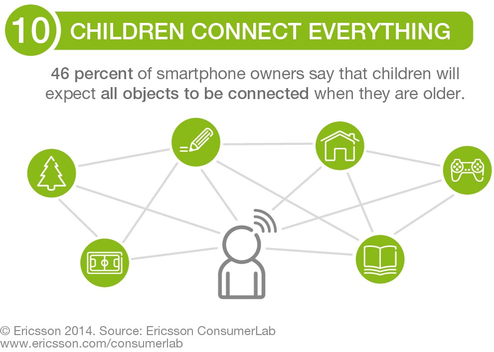 - Children connect everything. 46 percent of smartphone owners say that children will expect all objects to be connected when they are older.