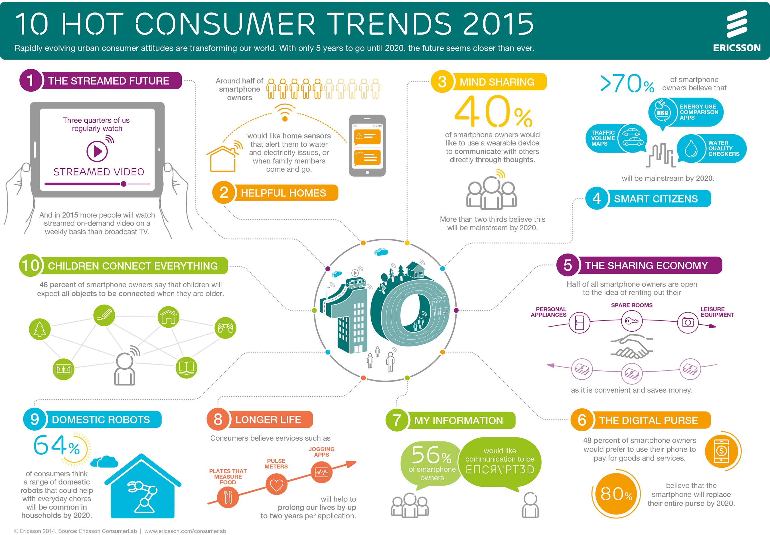 Stockholm, Sweden, 10 December 2014 -- In the fourth edition of its annual trend report, Ericsson ConsumerLab presents the hottest consumer trends for 2015 and beyond.