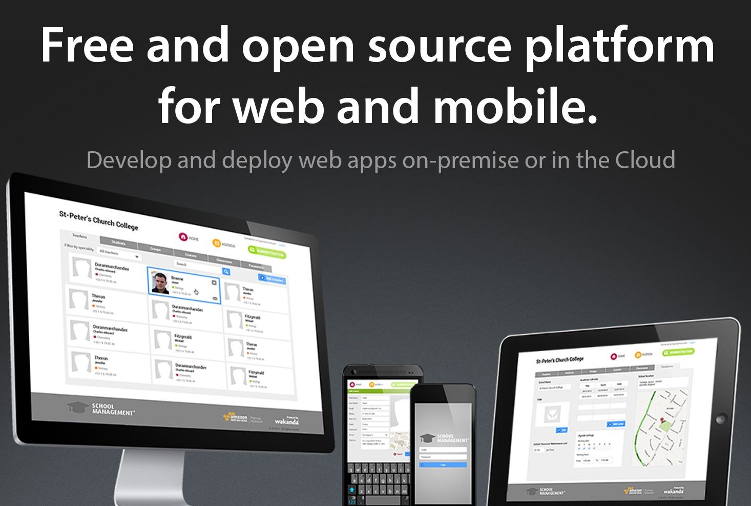Cloud solutions developed with Wakanda can be deployed on any desktop or mobile platform.