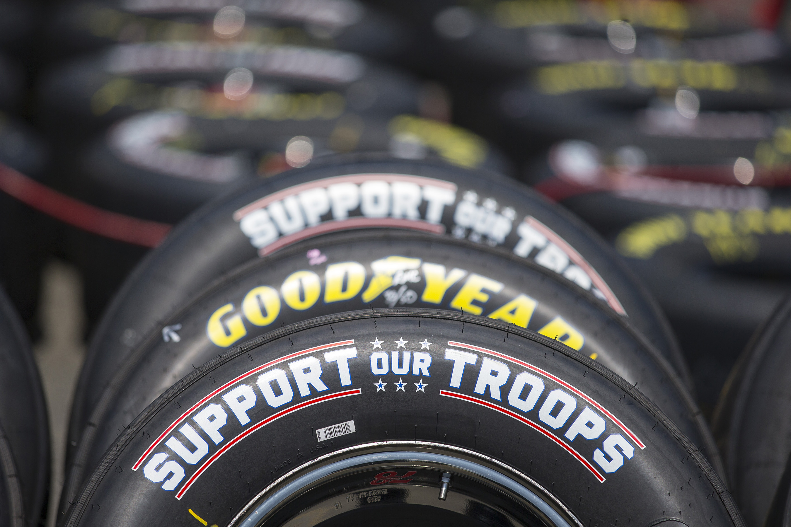 “The Goodyear Gives Back program continues to be one of the most visible symbols of military support during the Memorial Day race weekend,” said NASCAR Vice Chairman Mike Helton. “We hope the combined efforts of Goodyear and NASCAR will encourage fans to show their support for the men and women who serve or have served our nation.”