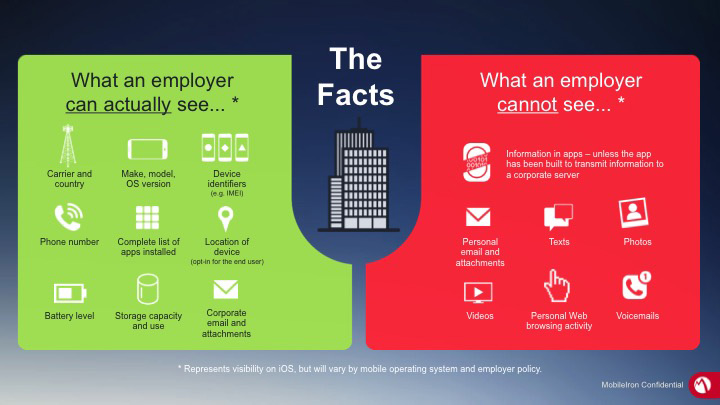 The facts: what the employer could actually see, dependingMobileIron on its policies*