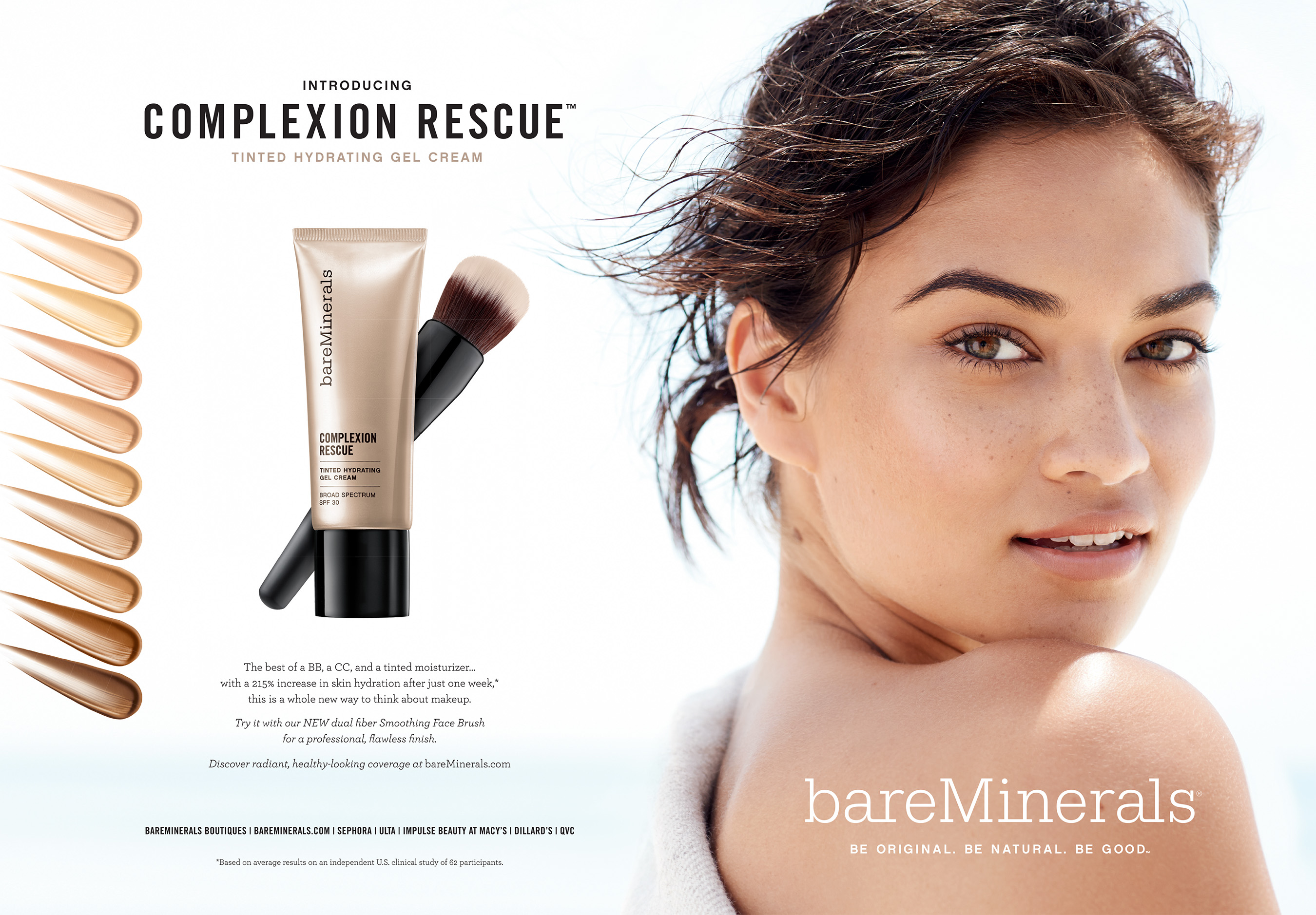 By challenging the composition of traditional complexion emulsions that feature water on the inside and oil on the outside, Complexion Rescue takes an inside-out approach with naturally hydrating squalane at the core, surrounded by mineral-infused water. The result? A staggering 215% increase in skin hydration after just one week.*