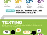 Texting turn-offs – Both single women (54%) and men (36%) find misspellings and incorrect grammar to be the biggest text message turn-offs, and 33% of single men don’t like “very short” text responses. Women don't want to receive sexts from men; men don’t want to receive texts during work; and singles don't want to receive a second text until after they have already responded to the first.