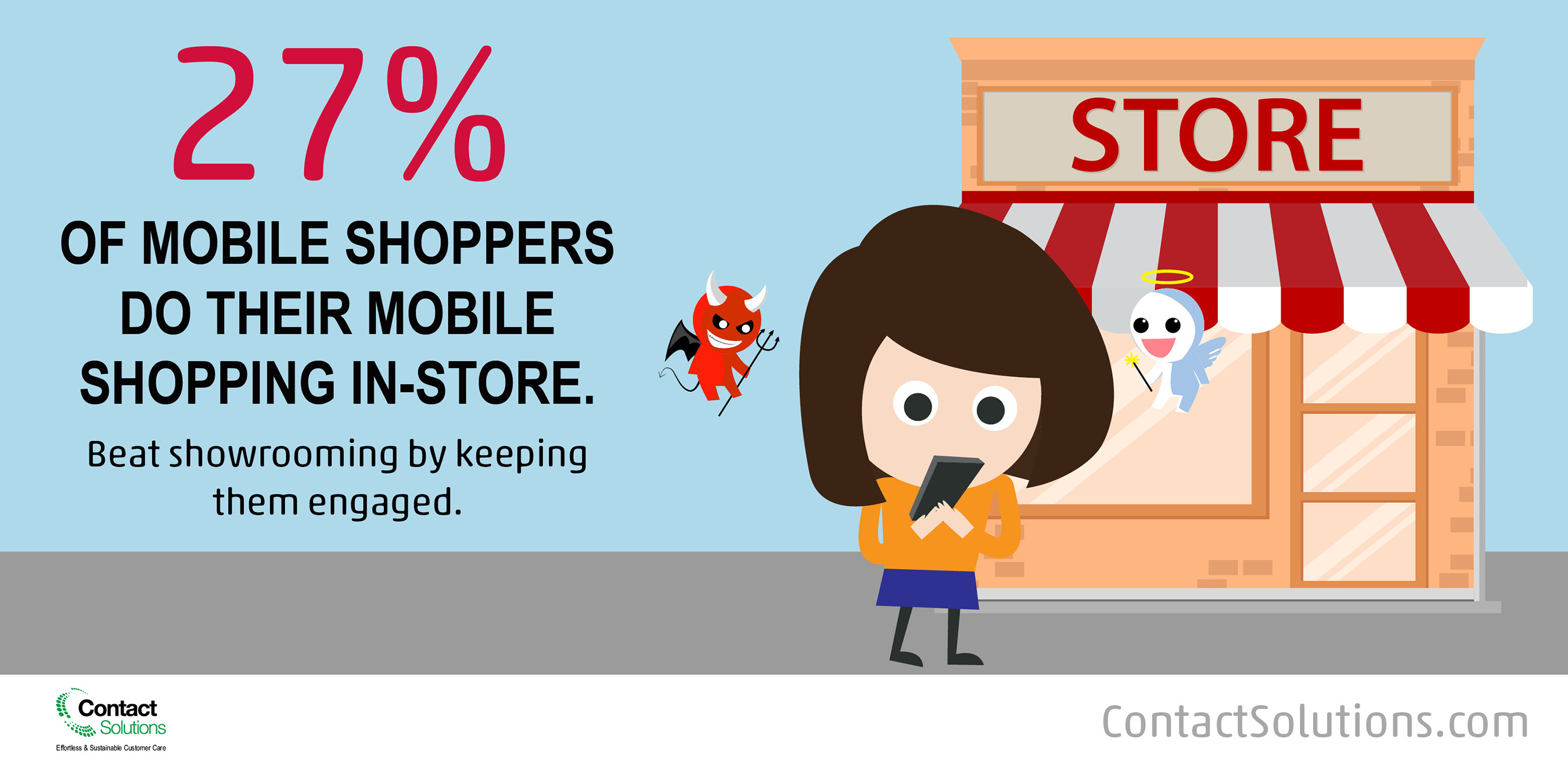 - Showrooming is rampant, but preventable: 27 percent of shoppers prefer to do mobile shopping in the actual store where they are shopping, but 26 percent browse mobile while in a competitor’s store. Retailers can thwart showrooming at their brick and mortar locations by providing better care in–app care than their competitors.