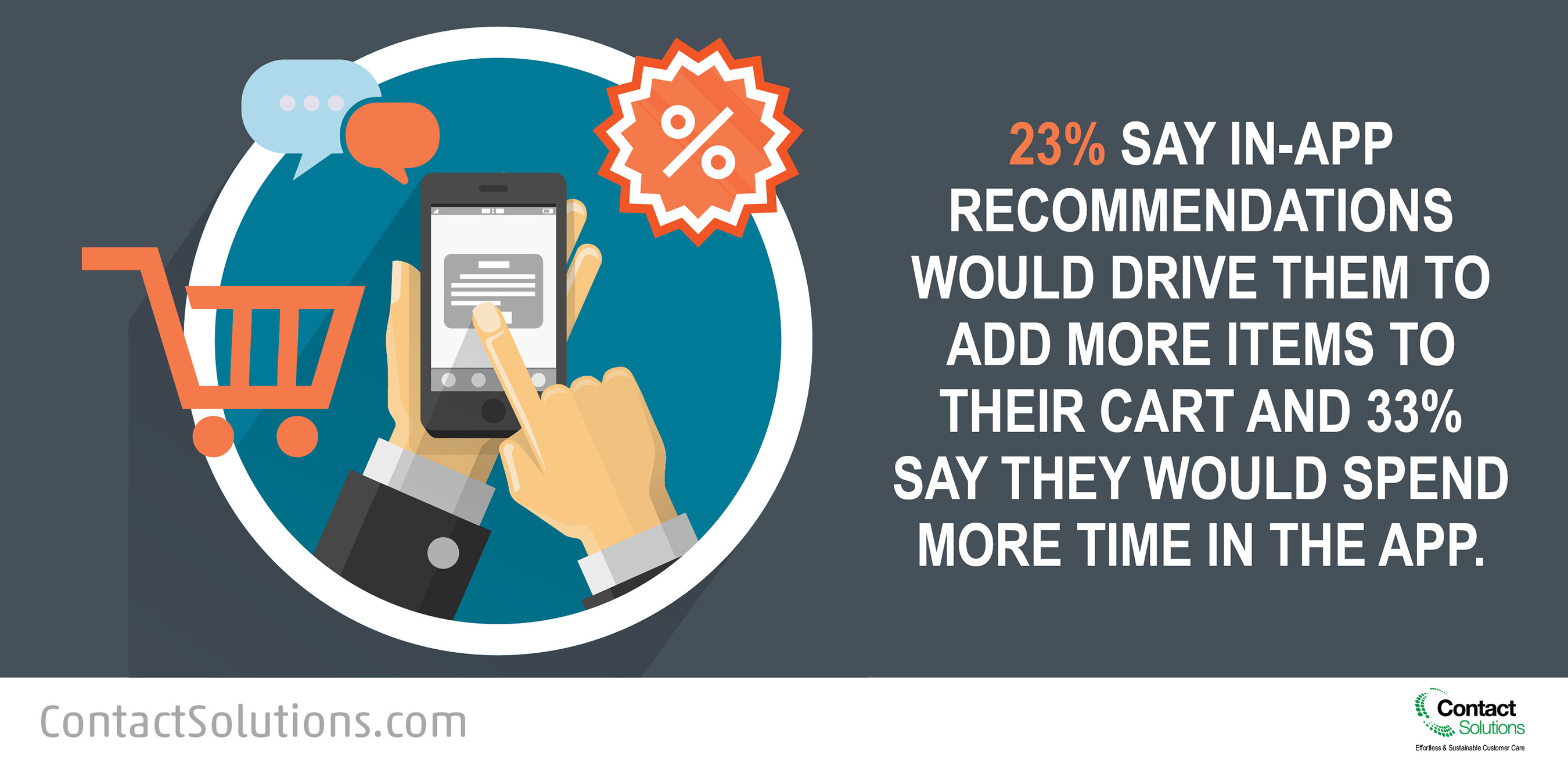 - App recommendations can help boost the bottom line: 23 percent of respondents said in–app recommendations would drive them to add more items to their cart and 33 percent said they would spend more time in the app.