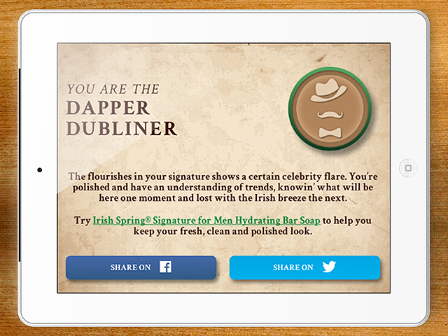 A signature says a lot about a guy, from their personality to their style. To reinforce this Irish Spring®, in partnership with an expert graphologist at the Graphology Consulting Group, created an interactive tool to analyze and showcase guys’ personalities based on traits and flares in their signatures. Curious lads can give it a try at IrishSpring.com and enter for a chance to win a buddy trip to see their favorite football players get drafted in Chicago1.