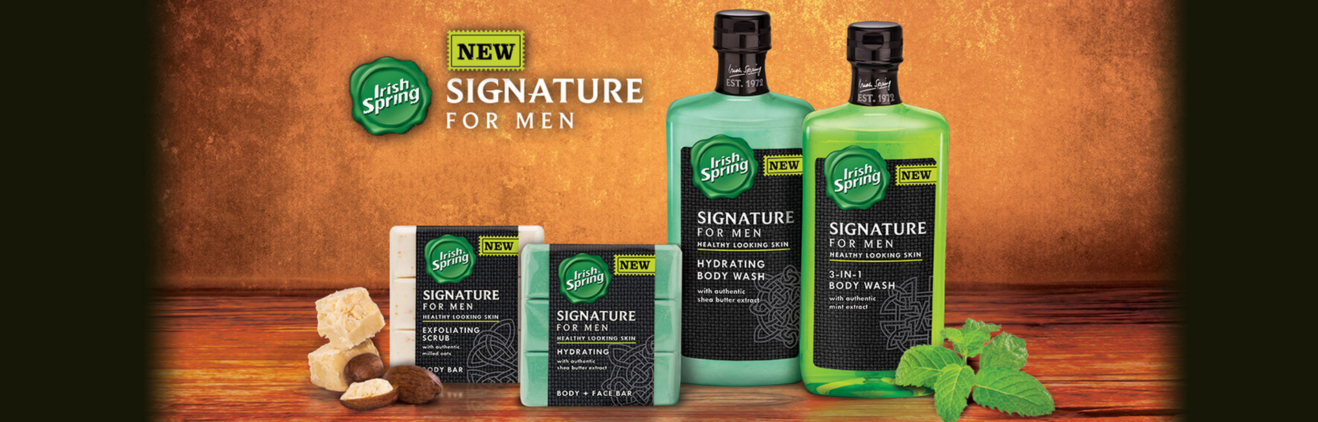 “Irish Spring® has over forty years of heritage designing products specifically for men,” says Bill Van De Graaf, Vice President and General Manager, U.S. Personal Care, Colgate-Palmolive. “Irish Spring® Signature™ for Men combines the notable scents of Irish Spring® with other product benefits, including exfoliating and moisturizing formulas.”