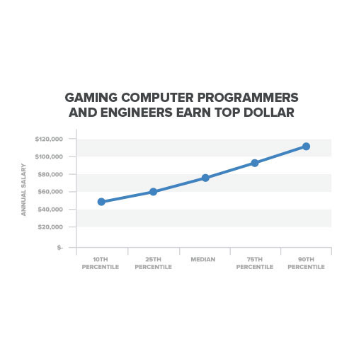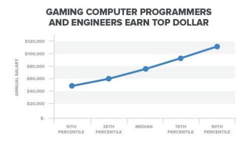 - Gateway to the middle class: Gaming jobs pay good wages that allow workers to provide for themselves and their families. Nearly two-thirds of gaming equipment manufacturing workers have a bachelor’s degree or higher and earn an average annual salary of $75,000. More than a quarter of computer and information systems managers in the gaming industry hold a master’s degree or higher and earn a median salary of $90,000 a year (and up to $152,600).