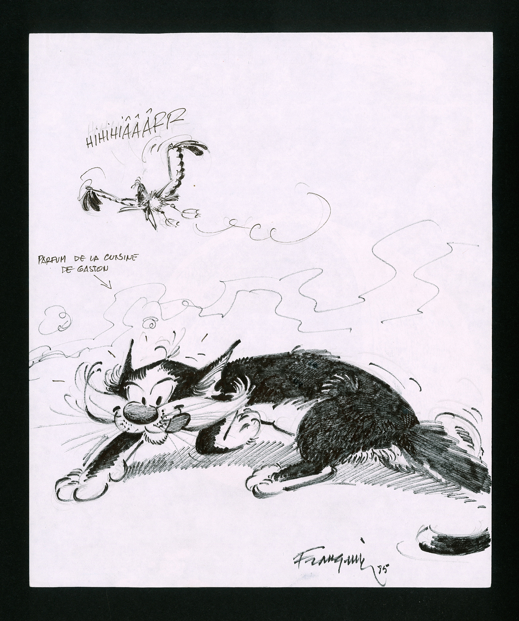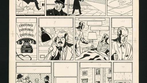 Among masterpieces of the sale is a page of La Marque Jaune (The Yellow «M»), the legendary album of the Edgar P. Jacobs’ Blake and Mortimer series, estimated between 100,000 and 120,000 euros. Published in 1956, this story appears as a turning point in the work of its author and The Yellow «M» soon became the emblematic symbol of the entire series. Moreover, Jacobs’ quintessential British tone and his recurrent themes such as the city of London and scientific experiments are well represented in this album. The 8th page displays a key episode of the album as Blake and Mortimer are officially involved in the investigation ; it is also the first time both heroes and the yellow mark, drawn straight on the pavement, appear together on the same page. To date, only one original page of Blake and Mortimer has ever been put up for auction, in 2010. Edgar P. Jacobs’ art is rare on the market, but in this sale, connoisseurs will be given the opportunity to acquire another page from the Secret de l’Espadon (The Secret of the Swordfish), estimated to sell between €80,000 and €85,000.