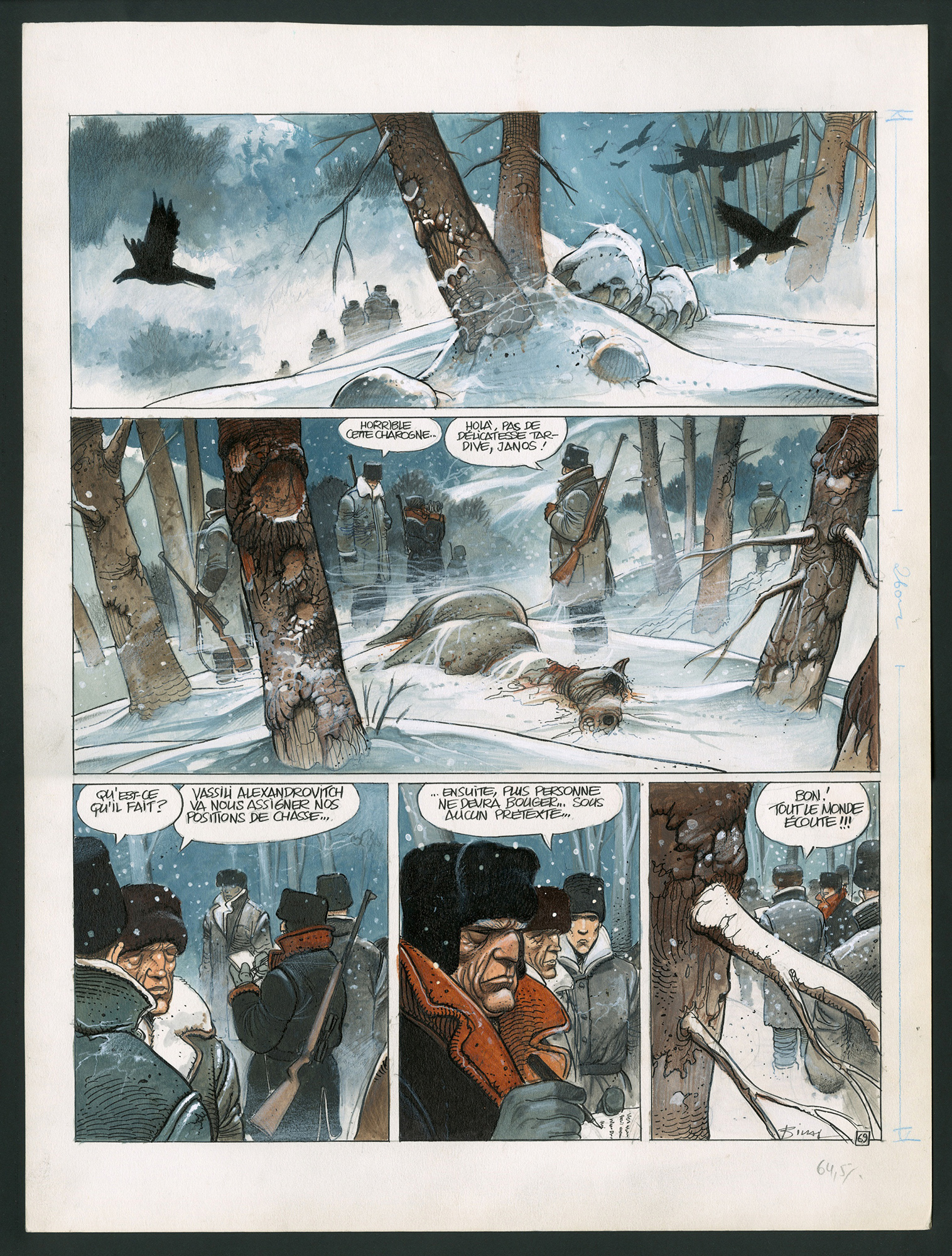 The sale will also feature the exceptional collection of Mr. Barbier. This renowned connoisseur of classic comics started building his collection over twenty years ago, when he was only twenty years old himself. Already ahead of his time, he had always considered comics as a form of art and, driven by his avant-garde approach, he started carefully collecting contemporary pieces, mainly from comics of the 1980’s and early 1990’s. This collection, estimated in the region of €600,000, will offer 42 masterpieces. Among these, there will be a wonderful selection from Enki Bilal’s legendary albums including five pages from the Foire aux Immortels (Immortals) and an additional 5 pages from the famous Partie de Chasse (The Hunting Party) which will be offered with estimates ranging from €25,000 and €50,000.