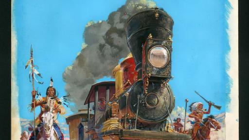 In this episode, two organisations undertake to build a railroad linking the Atlantic and Pacific oceans. In addition to being subjected to each other’s rivalries and sabotages, both companies have to endure Indian attacks... Lieutenant Blueberry is in charge of investigating and dealing with their quarrels. This cover was reproduced on both the album and the Pilote magazine –which published the first pages of the story–, and is one of three from the album which will be featured in the sale.