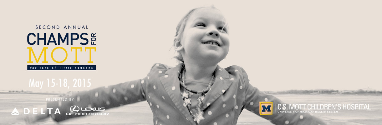 The 2nd Annual CHAMPs for Mott, scheduled for Friday, May 15 – Monday, May 18, 2015, is an exciting fundraiser for the University of Michigan C.S. Mott Children’s Hospital. With co-presenting sponsors Delta Air Lines and Lexus of Ann Arbor, the event brings together celebrities, health care leaders, athletes, musicians and philanthropists from around the nation to help raise much needed funds for the children at Mott — one of the top-10 children’s hospitals in the United States.