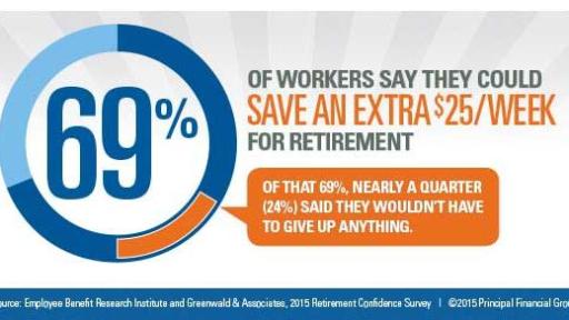 - 69 percent of workers think it is possible for them to save an additional $25 a week for retirement.