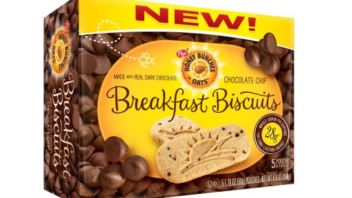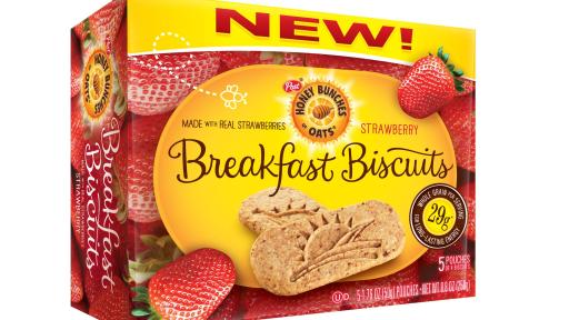 New Honey Bunches of Oats Breakfast Biscuits are available in three delicious varieties: Honey Roasted, Strawberry and Chocolate Chip. Each individual package of four crunchy biscuits provides more than 55 percent of your day’s whole grain, 4 grams of fiber and 5 grams of protein. Honey Bunches of Oats Breakfast Biscuits provides a new option for breakfast that is nutritious and convenient.