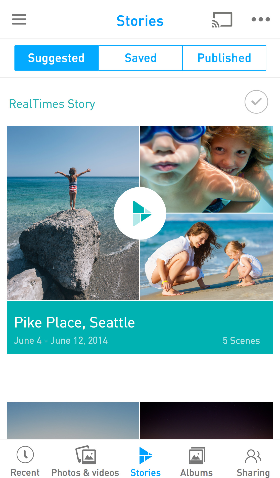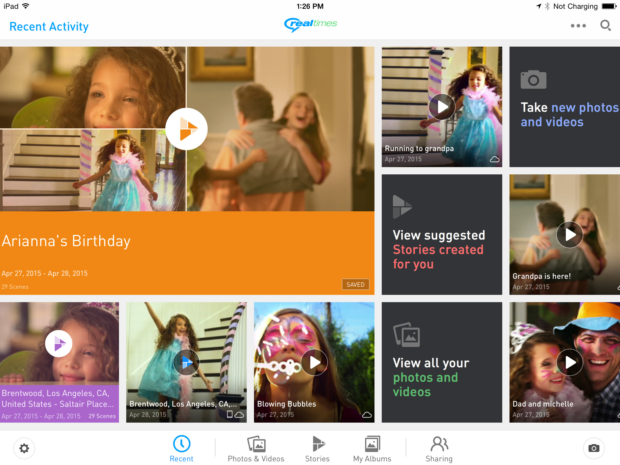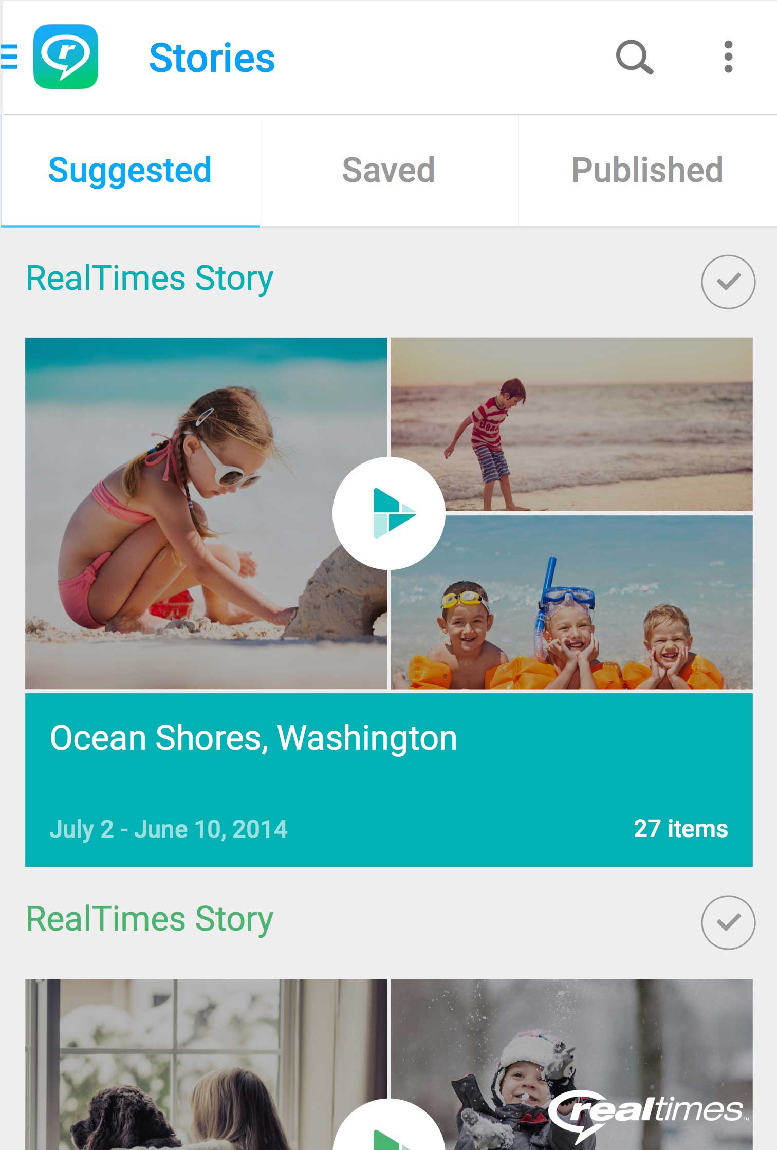 RealTimes solves one of the biggest problems consumers face today: too many photos and videos, and not enough time to organize and share them. RealTimes automatically picks the best moments from a consumer’s photo and video camera roll – that big soccer goal or baby’s first birthday – and automatically and instantly creates an engaging RealTimes Story. It’s also easy and fast to customize RealTimes Stories by rearranging clips and photos, changing the duration, and adding filters and personal soundtracks. RealTimes Stories are fun to watch and can easily be shared – recipients don’t even need the app to view the Stories.