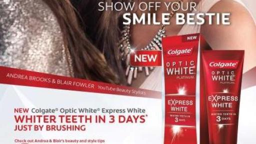 “We are beyond thrilled to partner with Colgate Optic White and kick off The Smile Show video series,” said Andrea Brooks. “Our viewers look to us for the latest and greatest beauty tips and we have to admit that of all of our beauty tips, we truly believe that your best accessory will always be your smile,” added Blair Fowler.