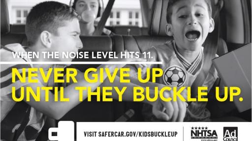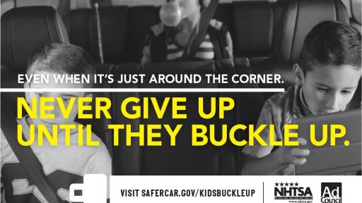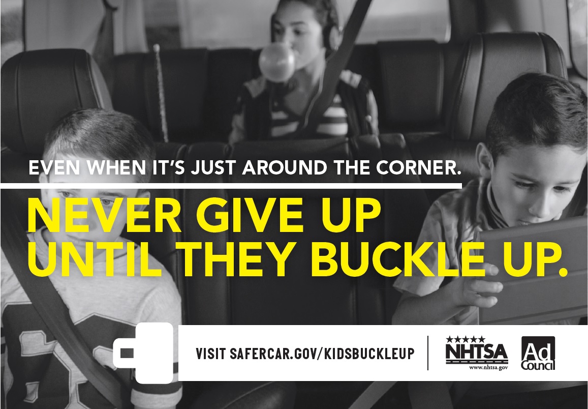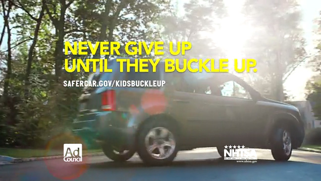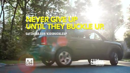 Ads encourage parents to “Never Give Up Until They Buckle Up”