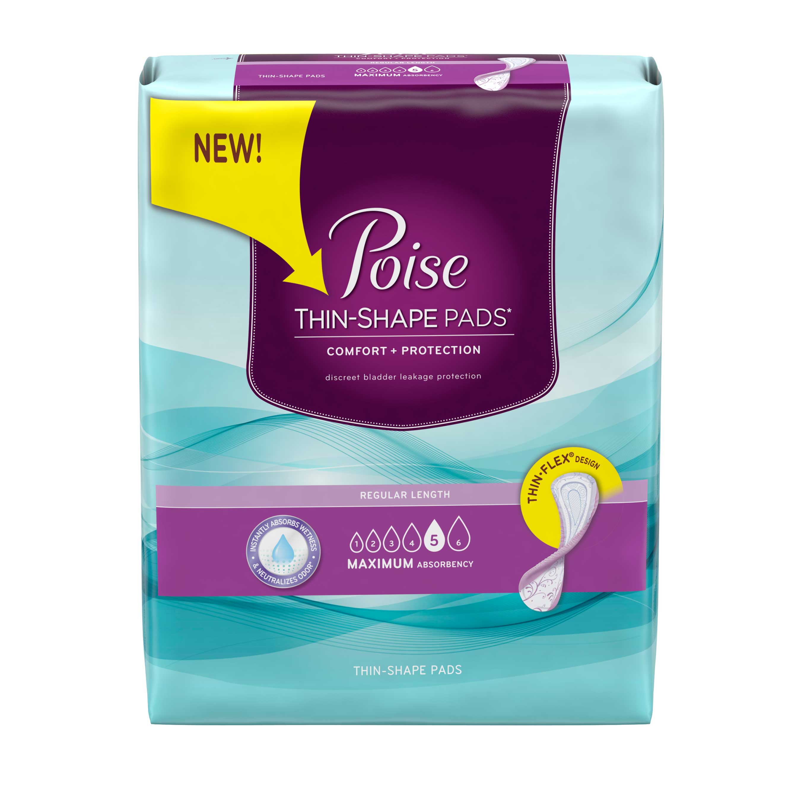 Designed to move with a woman’s body, new Poise Thin-Shape pads offer comfort and protection with Super Absorbent Material (SAM), a dry touch layer, leak block sides, an Absorb-loc core that quickly locks away wetness and odor and a Thin-Flex design for extraordinary protection that’s three times drier than period pads†.